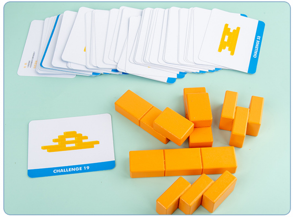 • يختار الطفل أحد بطاقات الألغاز ويقوم بحل اللغز وترتيب المكعبات بناء على البطاقة.